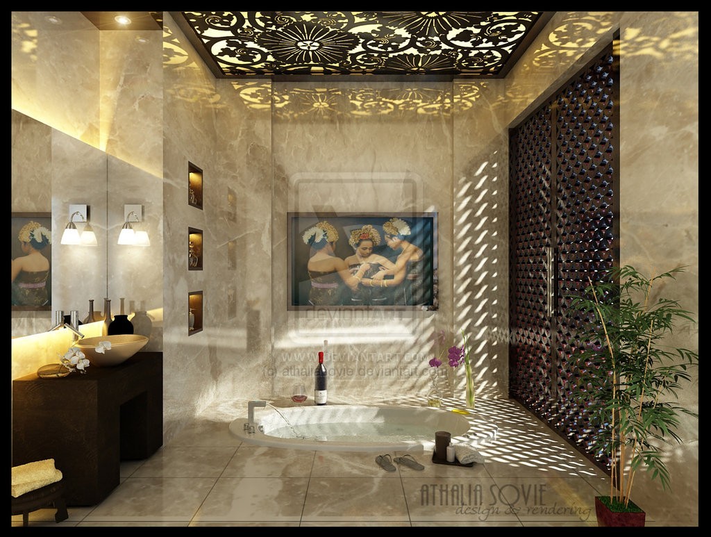 Today, we feature a list of 16 inspirational bathrooms to tingle your senses. Look at any one of them below and you will find one thing in common - elaborate attention to detail. Be it the intricate bathroom wall decor, ceiling artwork, or the seemingly unreal floor lighting, each one of them has something special thrown in. We could argue for ever about how utilitarian some of these designs maybe, but there is no denying the class they seem to ooze.