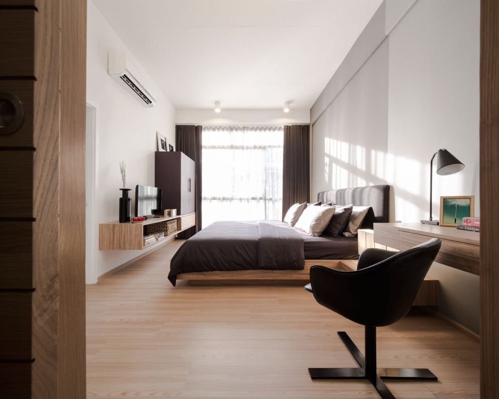 Located in Bangkok's Fashion District in the new Siamese Blossom residential complex, this breathtaking open plan townhome was envisioned to allow tenants to coexist with the natural surroundings highlighted with beautifully landscaped gardens. To facilitate this interaction with nature, the townhome is designed with walls of windows opening to the outdoors. The main area of the home boasts an open floor plan with a soaring two-story ceiling which encloses a large living area, dining room and kitchen on the first floor. The second floor features two bedrooms, a home office and a luxurious bath. The home is decorated in a neutral palette accentuated by touches of black in an eclectic, contemporary style.