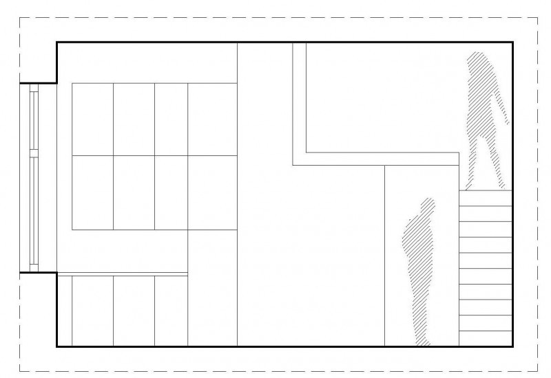 The key to any small apartment is making sure that you make use of vertical space. By tucking a bedroom up a set of narrow stairs, the designers create a makeshift second floor that frees up a lot more living space.