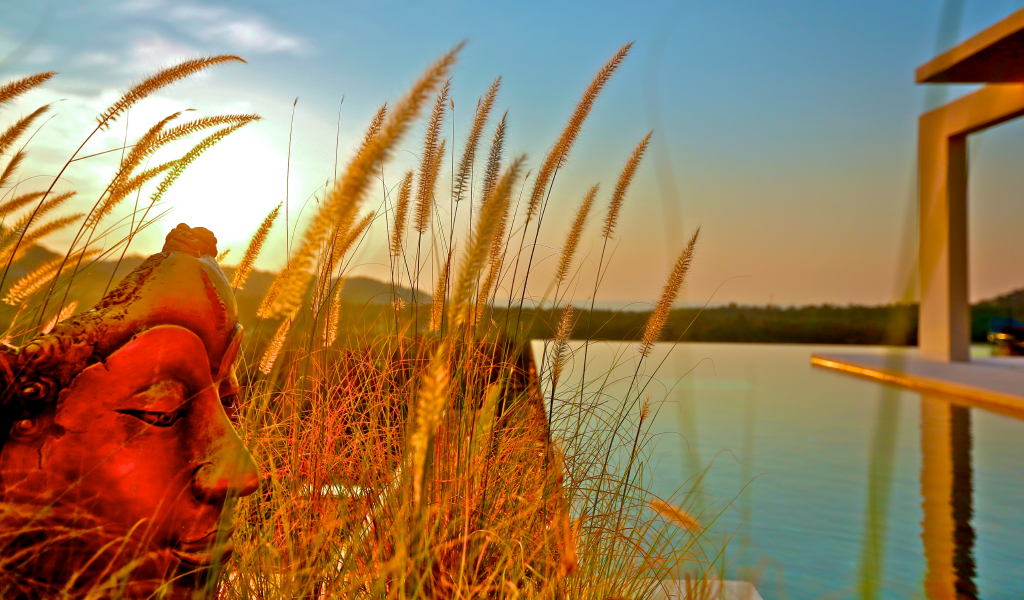 This villa, one of the newest at the deluxe Samujana spot, begins on a huge sun deck that overlooks a breathtaking natural spectacle.