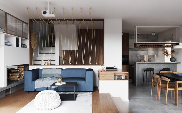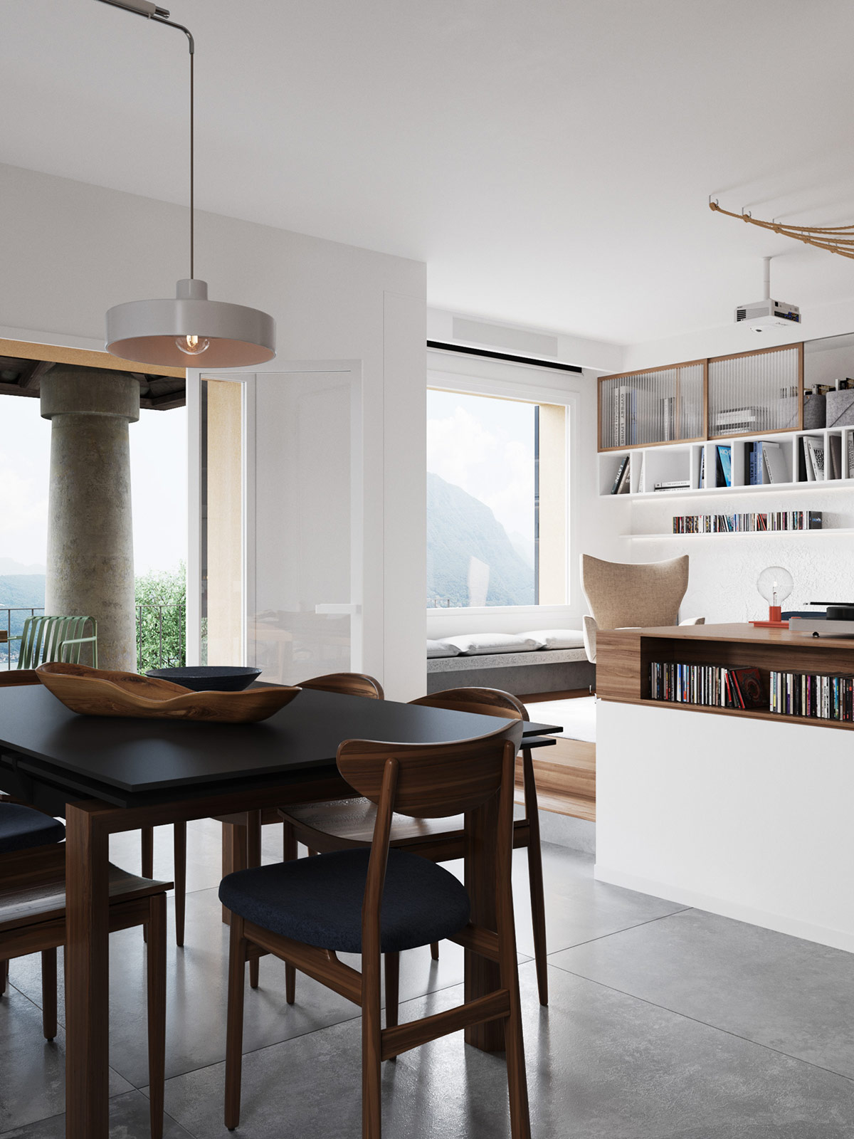 This is a project built on contrast, carefully created by Cartelle Design. The young married homeowners in Milan, Italy, presented two very different tastes in interiors. The taste clash between the couple resulted in the design team having to seek a way to combine cool minimalism with cosy country house chic. It was important to the owners that the interior maintained that special summer house on the lake kind of feel, so it was decided that warm natural wood and soft texturing would be teamed with cold technological functionality. The result is bright space that is crisp with practicality, yet seasoned with charming beach house touches and character.