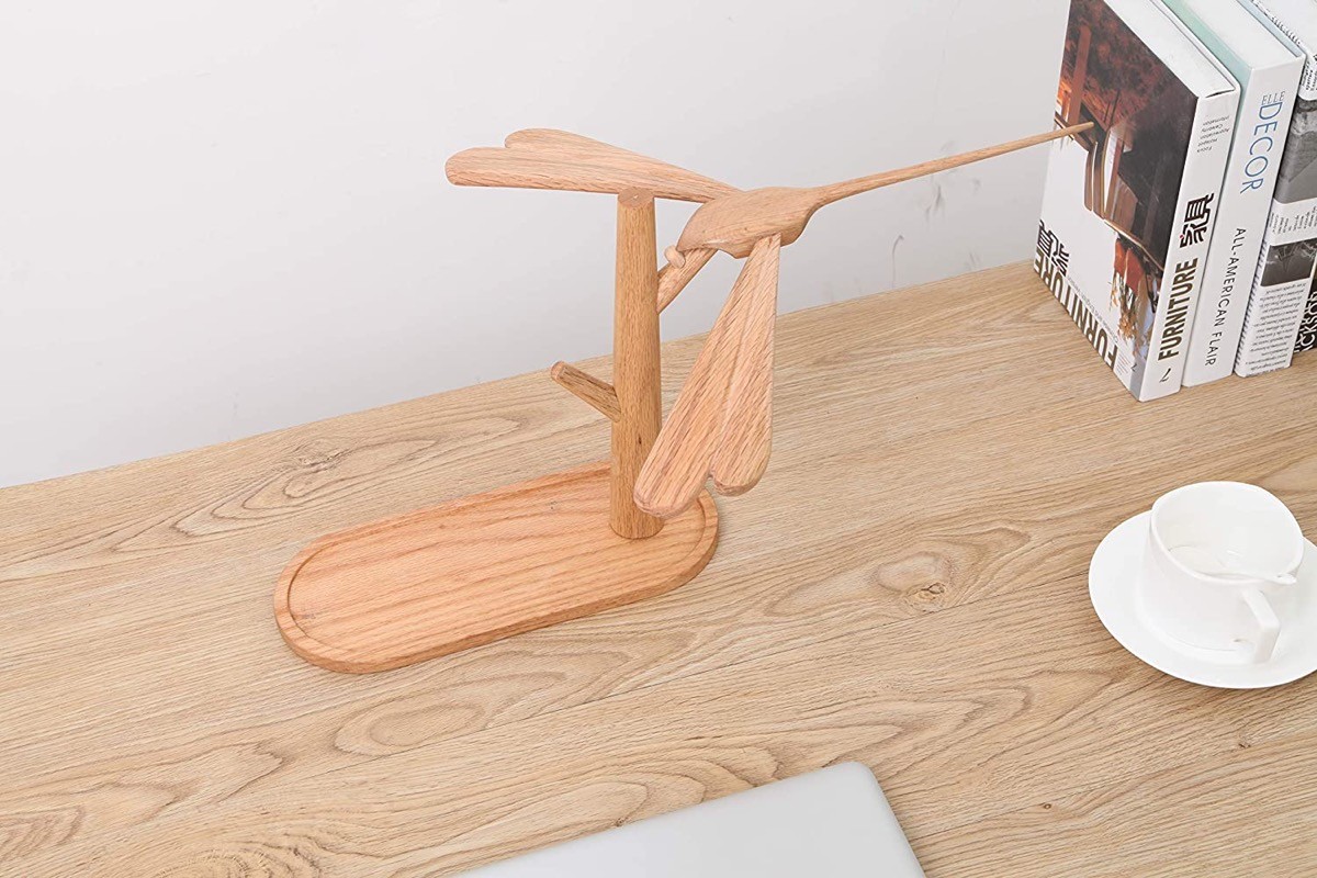 Ah, the wonders of physics. Balance the beautiful Dragon Fly lamp anywhere you please.